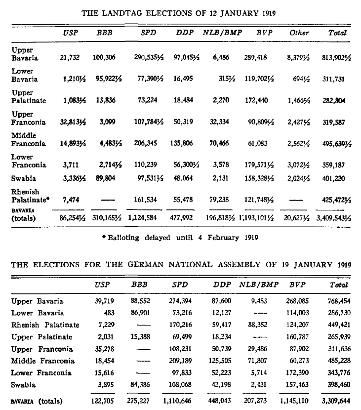 Bavarians went to the polls twice during January 1919, first to vote for a new Landtag, and then one week later for the new National Assembly in Berlin.