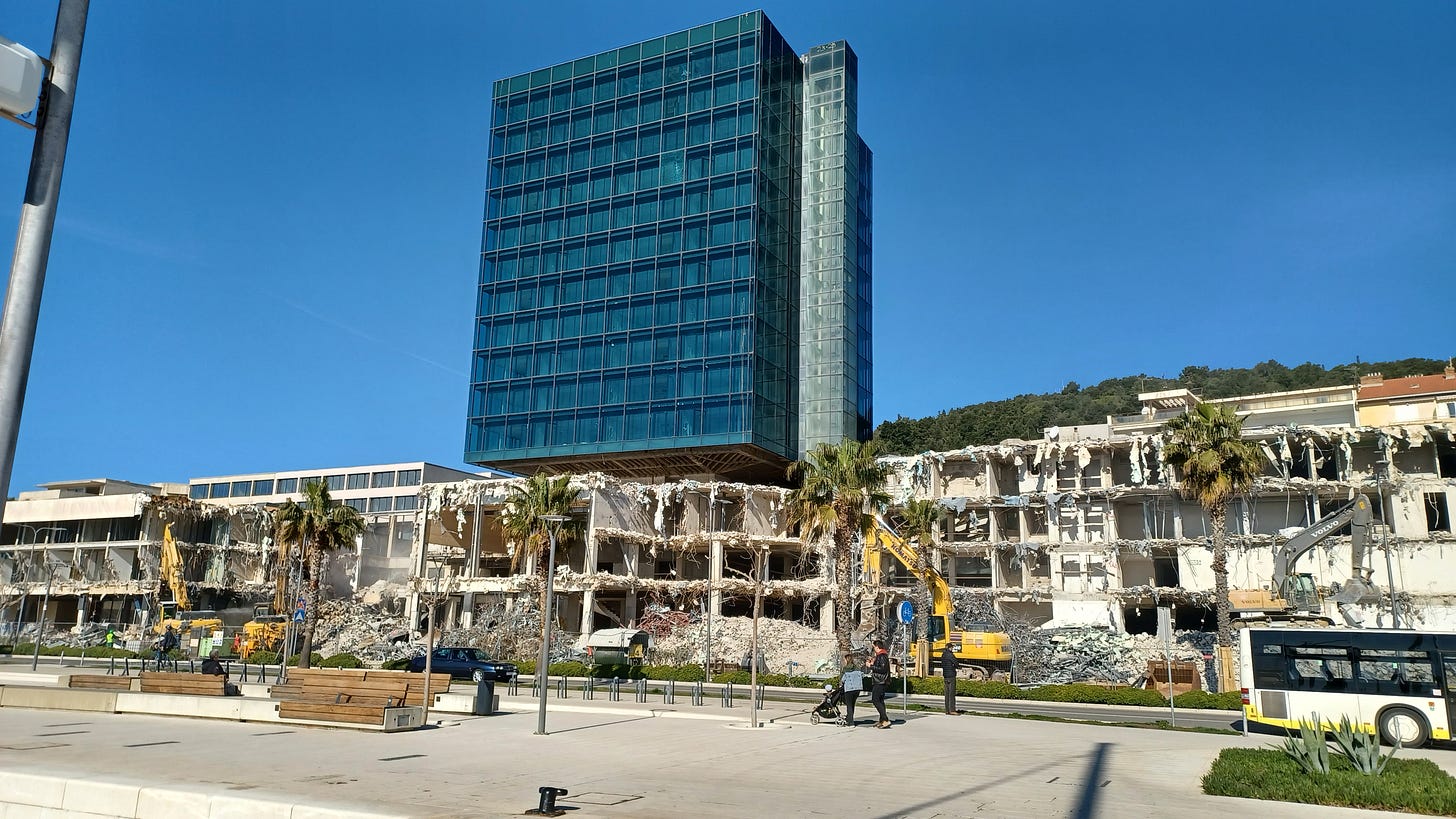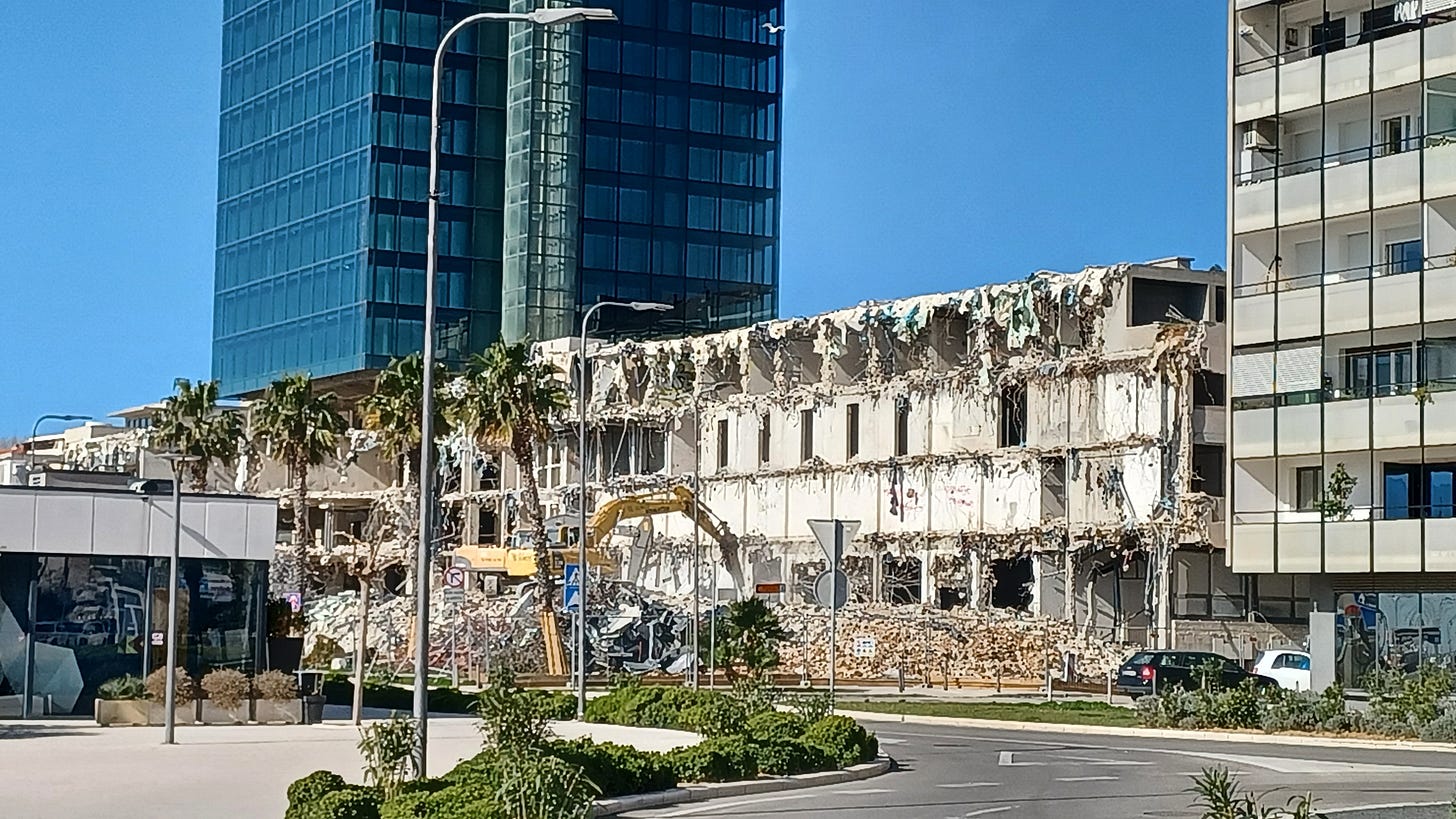 After almost a decade, the eyesore that has blighted the revitalized Zapadna Obala (western shore/waterfront) of Split’s harbour is finally coming down.