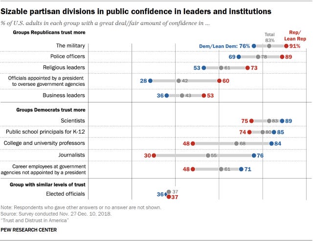 Trust is eroding, but as these charts show, some governing institutions retain rather high levels of trust.