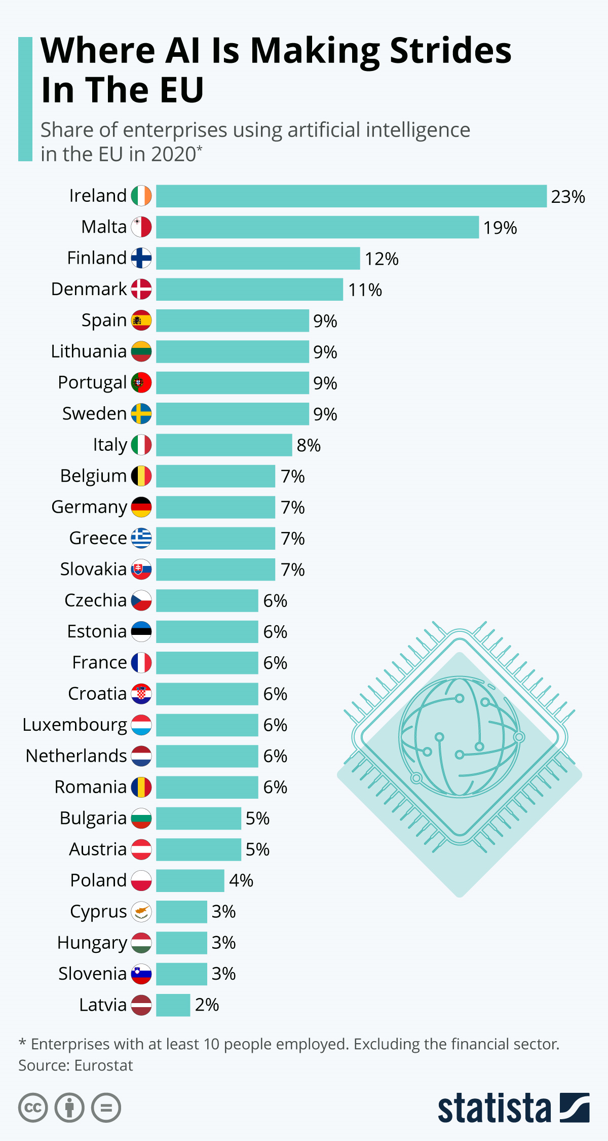 The Irish rate of AI adoption is similar to the Irish per capita GDP: just because a Silicon Valley giant has an office there for tax purposes that represents their EU operations, it doesn't mean much for the average Mick.