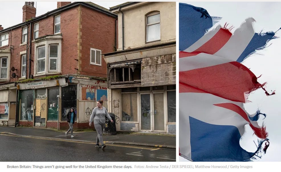 Read the rest of the Der Spiegel piece to see how the National Health Service (NHS) is collapsing, how hunger is now becoming a visible problem in parts of the country, and how the existing housing stock is not only shoddy, but unhealthy (black mold).