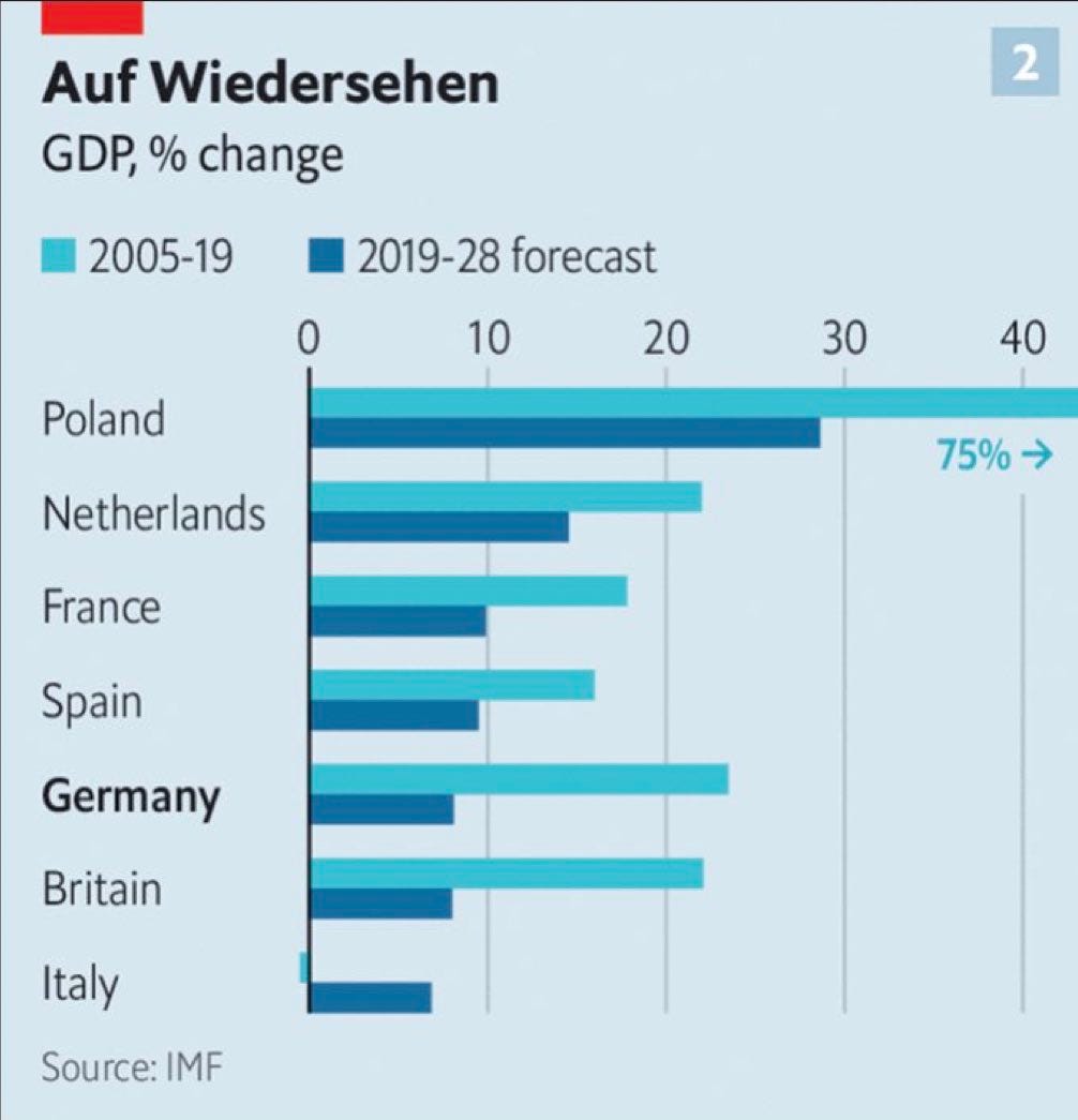 Poland, on the other hand, has undergone an economic miracle these past two decades, and its future looks very bright, to the point where it is expected to leapfrog the UK in GDP per capita: