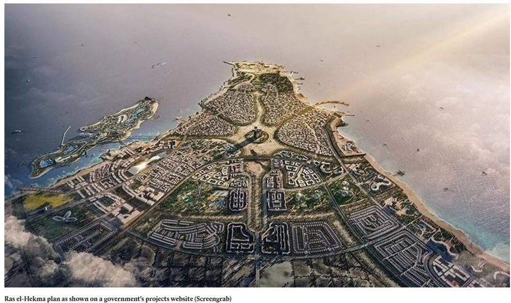 Another reason has to do with the announcement that Egypt will be giving land to the United Arab Emirates for it to develop in return for $35 Billion USD. It turns out that the Egyptians were already working on a deal to remedy their economic situation, one much less politically toxic and potentially destabilizing than the offer from the Israelis:
