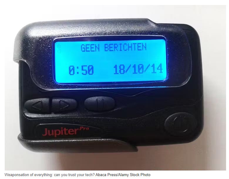 So, should we worry that our mobile phones might turn on us in the way people’s pagers and walkies talkies attacked them in Lebanon this week? Perhaps not yet, Lacy concludes. But as he puts it: “In times of dramatic and rapid change in AI, drones, robots and cyberattacks, the only certainty is uncertainty in this complex, and often terrifying, world we are living in.”