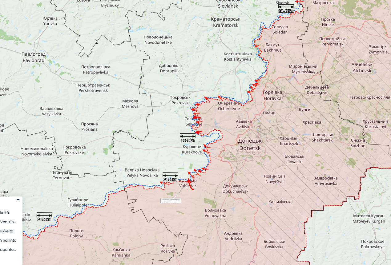 In fact, the news has been very bad and is only getting worse. Russia continues to grind out victory after victory in the Donbass, with the time between each victory becoming shorter and shorter. The Ukrainian invasion of Russia and the occupation of a salient on the border in the direction of the city of Kursk failed to lure Russia into moving some of its forces away from the Donbass and towards that section of the front. The Ukrainians are now stuck on Russian soil, with no larger strategy to direct them as to what to do next besides “hold”. Even worse, they re-directed precious resources for their gambit, resources that would have better served them in defending places like Pokrovsk, and like Ugledar, the fortress town that has served as a lynchpin in their defense in the Donbass, until it fell into Russian hands yesterday after holding out against them for two years.